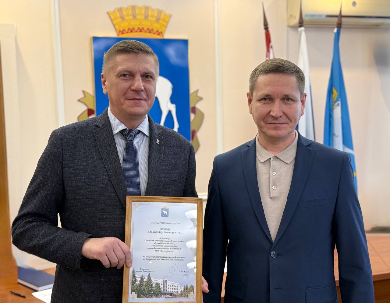 Добрые дела объединяют: Антон Трудинов поблагодарил МУП «Водоканал» за участие в «Ёлке желаний» Исполнять детские мечты — это почетная и очень теплая миссия. Врио мэра Йошкар-Олы Антон Трудинов вручил благодарственные письма директору Водоканала Андрею Ерешкину и заместителю директора Александру Синяеву, которые стали «добрыми волшебниками» для детей, оказавшихся в непростой жизненной ситуации. «Ёлка желаний» — это не просто акция, это подтверждение того, что в Йошкар-Оле живут и работают люди с большими сердцами. Когда бизнес, городские службы и власть объединяются ради доброго дела, это делает наше общество крепче, а жизнь детей — ярче.